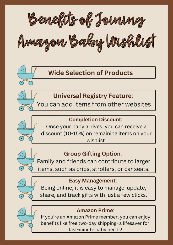Popular options like Amazon Baby Wishlist, make it simple to add items, track purchases, and share your list with loved ones.